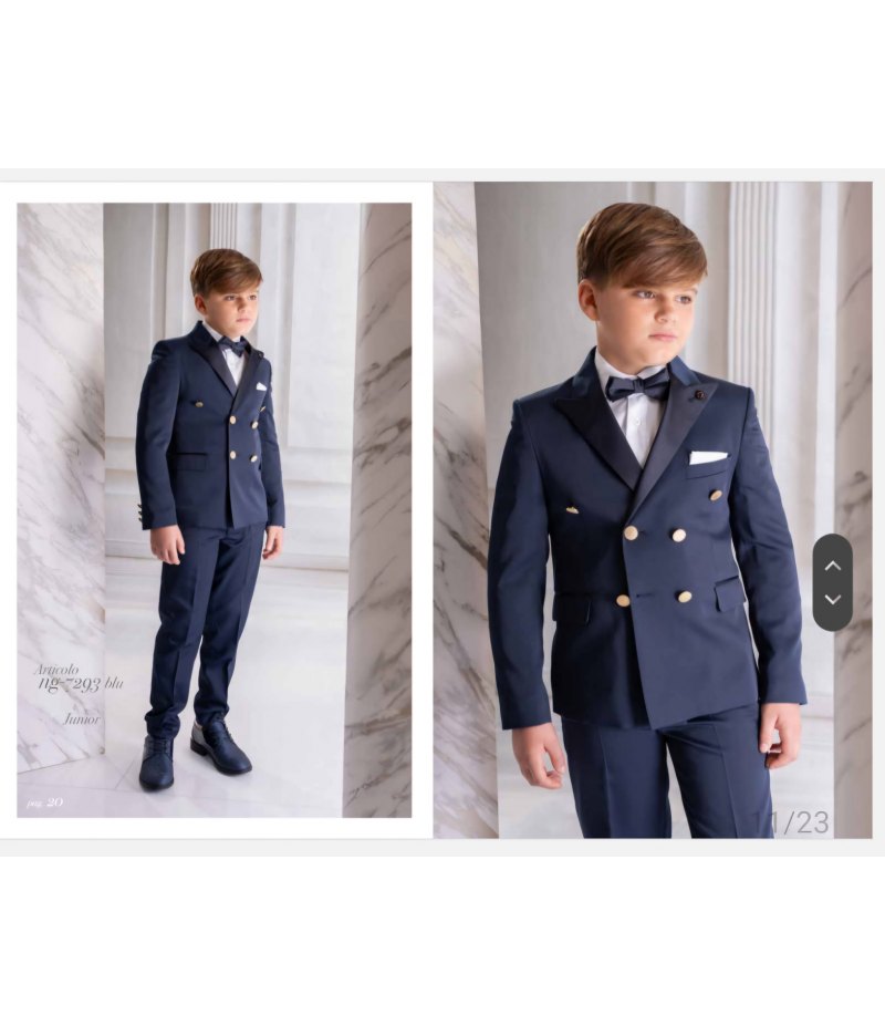 Doppiopetto con bottoni dorati, Pantalone idem e camicia semi elasticizzata con papillon,
