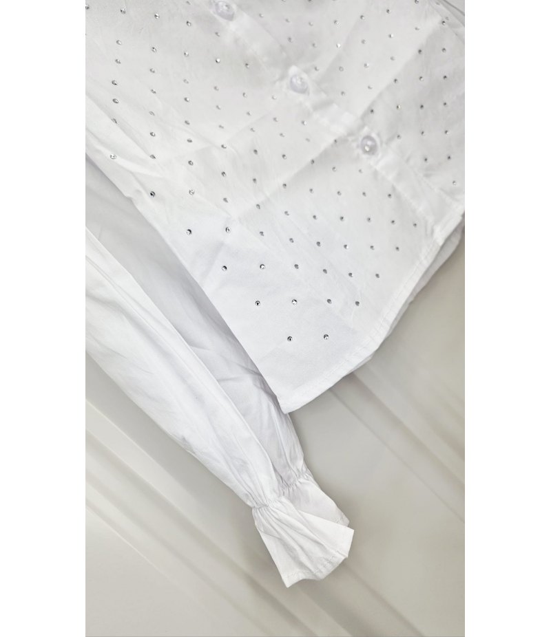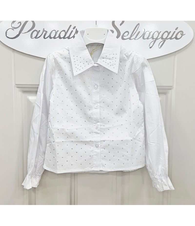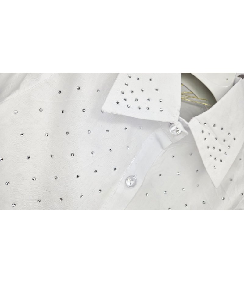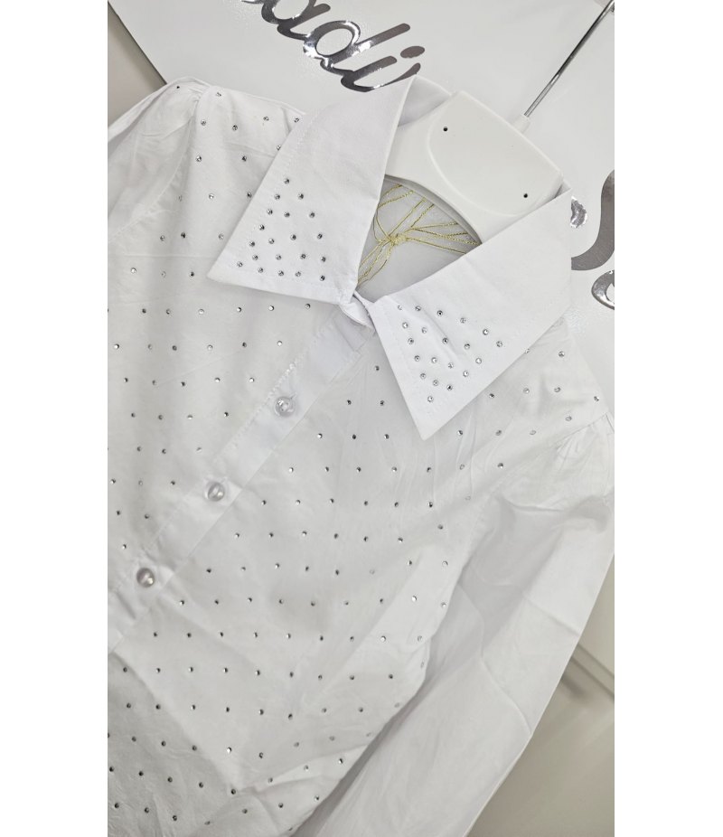 Camicia elegante e luminosa per bimba, bambina e ragazza, perfetta per cerimonie ed occasioni speciali. Il design raffinato è arricchito da micro brillantini che donano un effetto brillante e delicato, mantenendo uno stile pulito e sofisticato.