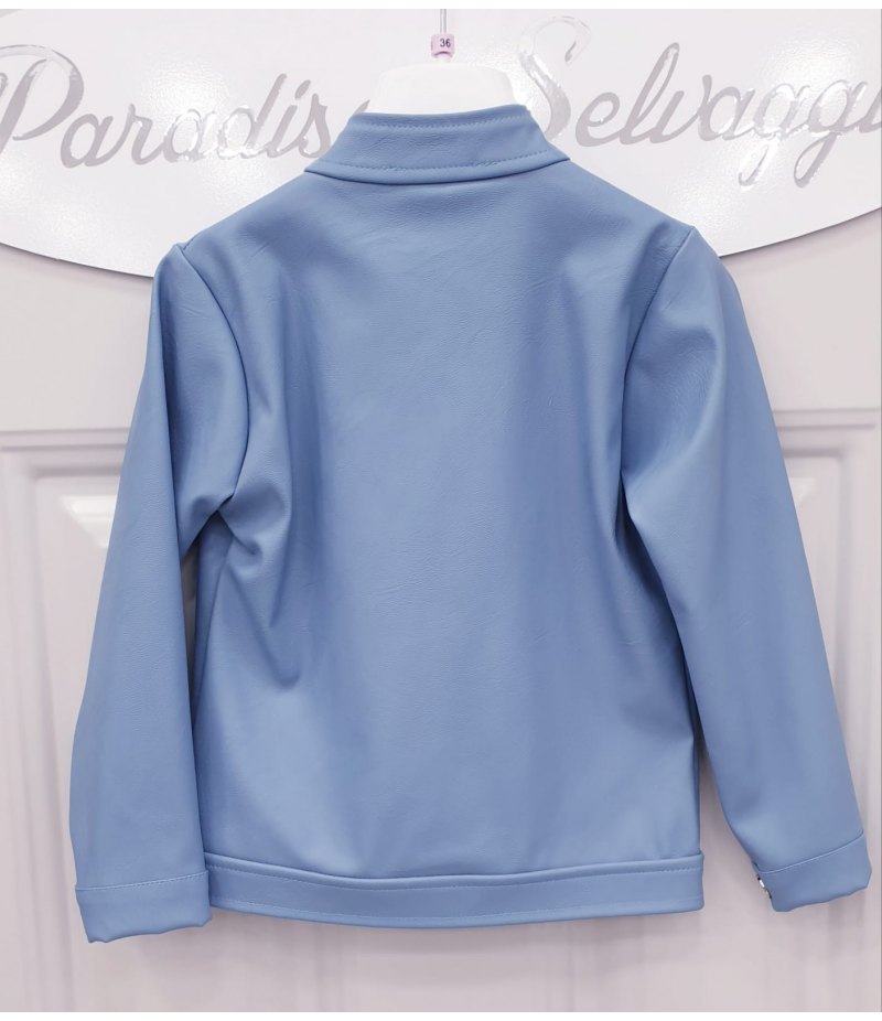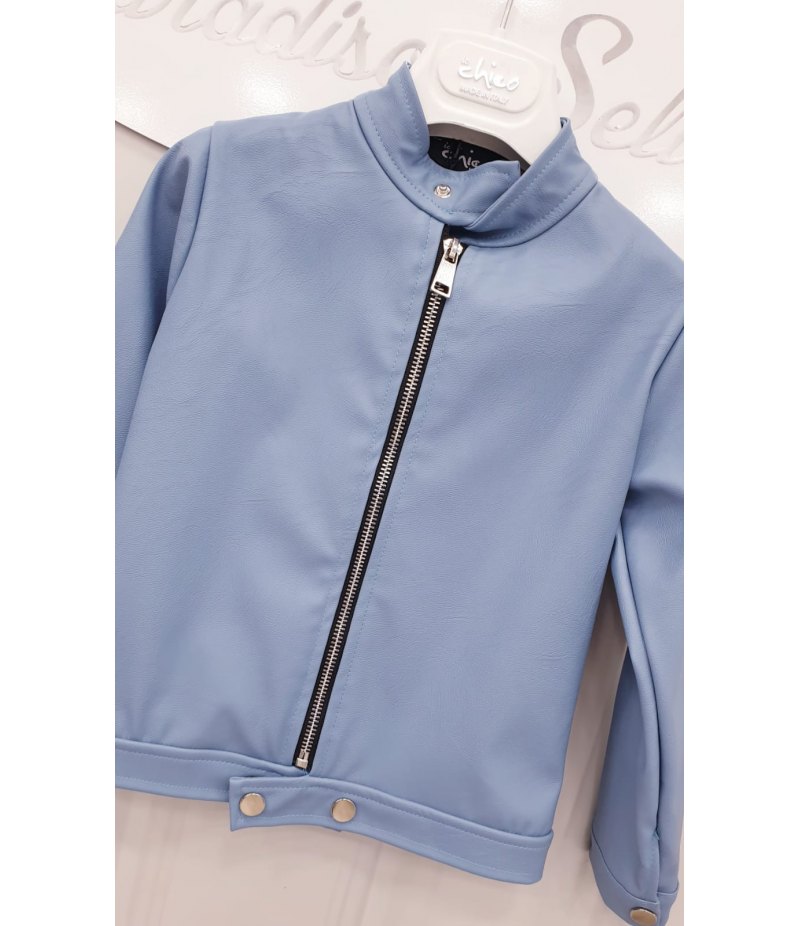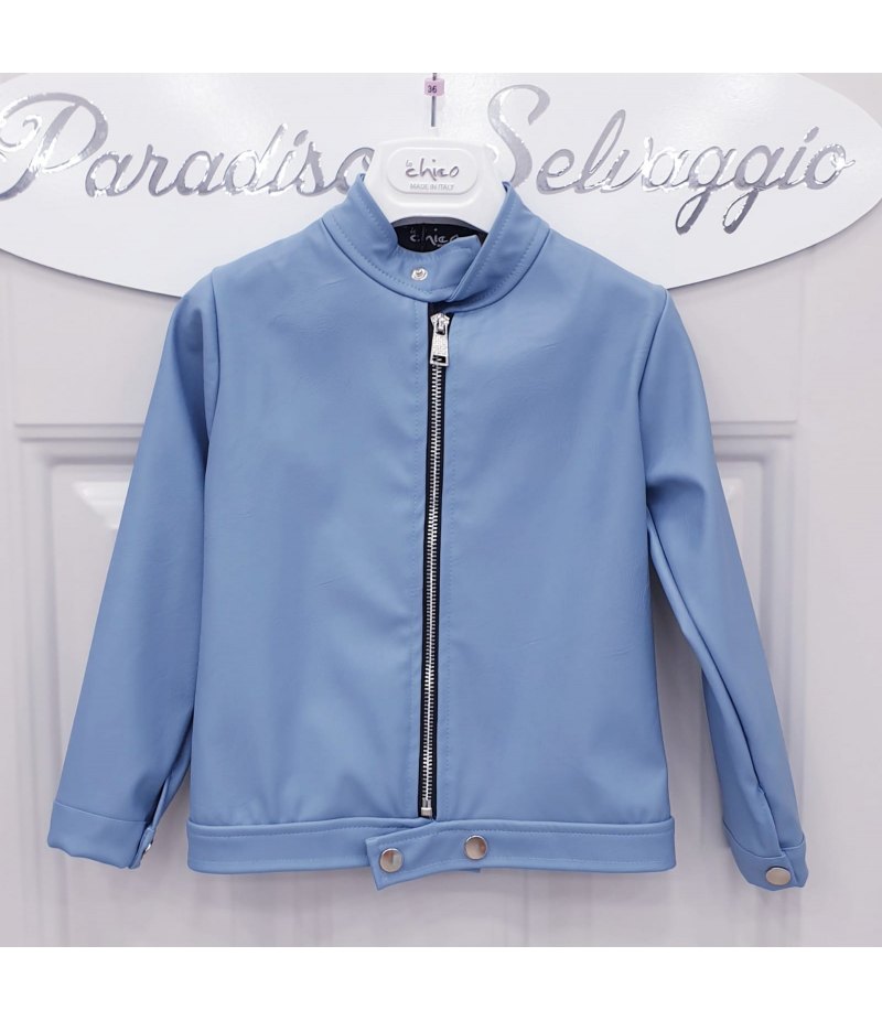 Giubbino per Bimbo e Bambino, Colore Carta da Zucchero, in Ecopelle, con collo pistagna con bottone metallico, chiusura con cerniera e bottoni metallici alla fine, polsini con chiusura con bottone metallico, marca Io Chico.