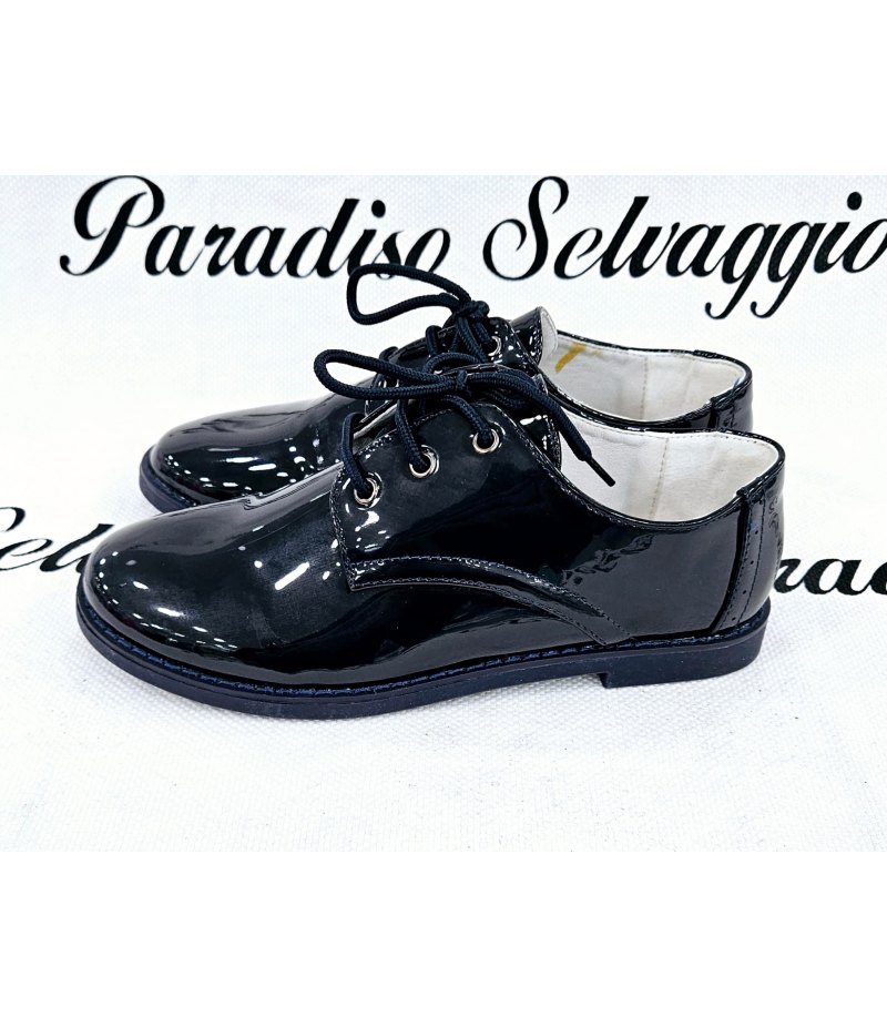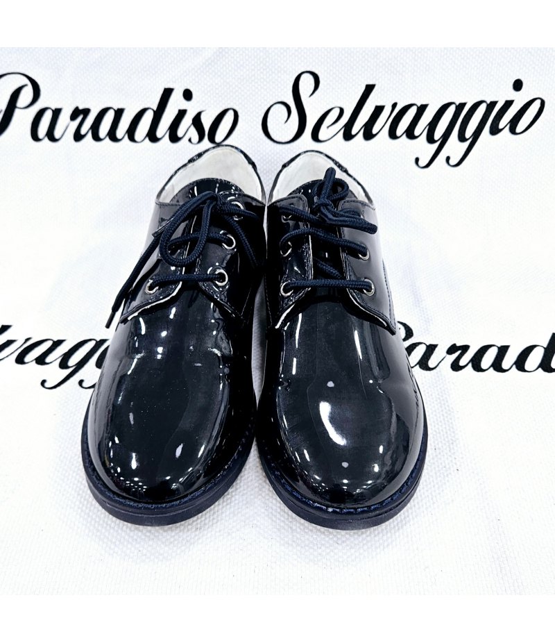 Scarpe classiche per Bimbo, Bambino e Ragazzo, Colore Blu, in Vernice qualità Ecopelle e suola in gomma, comodissime, marca Bacio & Bacio.