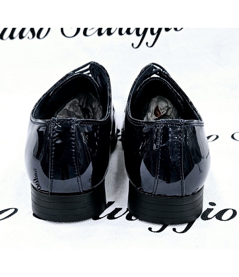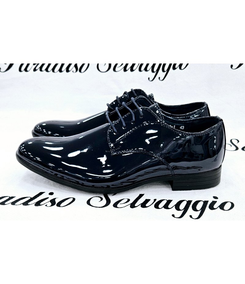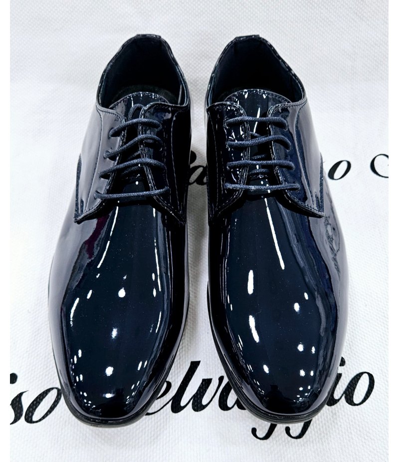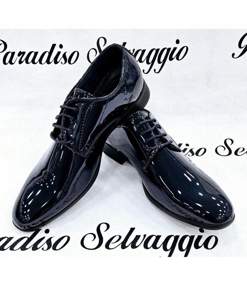 Scarpa Mocassino Uomo Cerimonia in Vernice Blu, Allacciata con Suola in Gomma, Qualità Ecopelle Lucida, Marca Luchi
